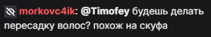>>25231987 вот у меня тоже две огромные залысины и уже любая прическа смотрится нелепо. почему эти ебаные волосы так мало людей песаживает? вот асмонголд лысый, мэддисон лысый. все боятся ехать в эту турцию чтобы пересадить себе скальп с затылка.