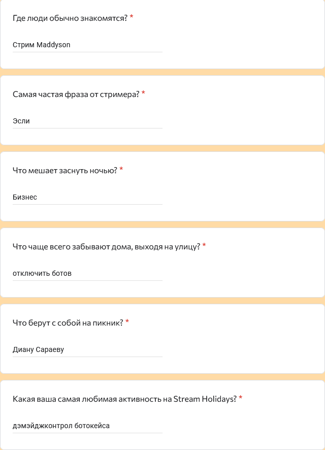 — Арыч, мне надо будет на полтора месяца съебать, подменишь меня на стримерском фронте? — Конечно, Мэд, мы же с тобой лучшие друзья, я не дам заскучать твоим зрителям!