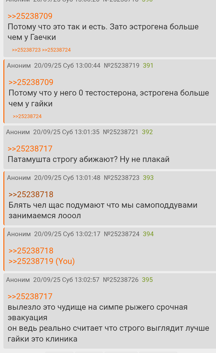 >>25238269 слился от чего и кто слился? тот пост был мой первый за все время тебе скаюшка, выше ты базарил вообще не со мной, хочешь выдели все сообщения с кем ты спорил там и я пруфану что мое лишь одно сообщение, то на которое ты щас ответил