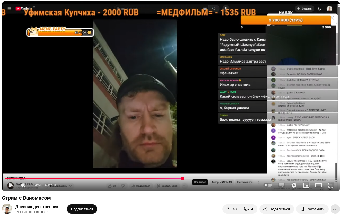 В 2020-2022г периодически возвращался и снова пропадал, более менее регулярно стал выкладывать видосы с начала 2023 года. С октября 2024 активно пилит видосы для бусти, в том числе обзоры на еду. Удалил свой основной аккаунт из-за нападок хейтеров.