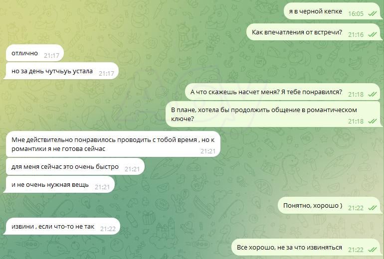 Встречал бабу на православных знакомствах, симпатичную. В 2020 году искала врача в православных пабликах, мне в ЛС, даже не ответила. В 2021 увидел ее анкету, искала военного врача или просто военного. Сейчас ее анкета - просто ищу собеседника, "плевать, даже если ты дворник". С этого я ввизгнул знатно.