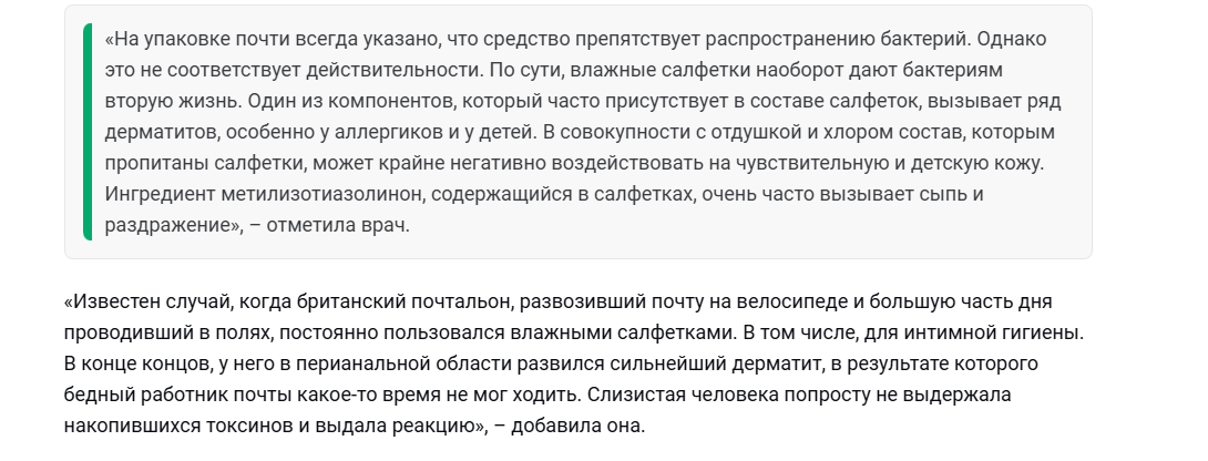 >>25242344 чубрик, я уже кучу лет этим промышляю и всё прекрасно, а вот эти истории, где додик-немытый-селюк срал в полях, сел на борщевик и подхватил холеру, а виноваты в итоге богоподобные влажные салфетки - это всё кал из жопы