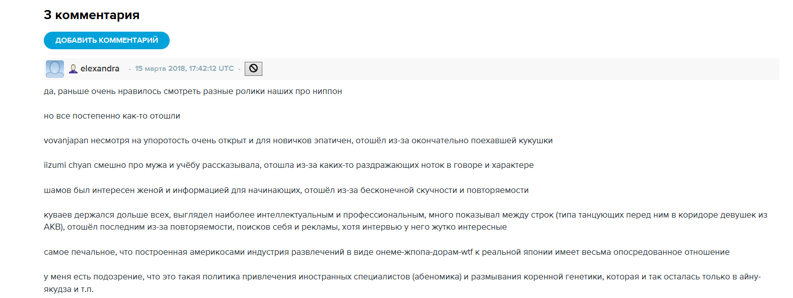 Кто-то постил уже в /ja про бобиндера? а то там столько новых снг блоггеров про Японию, мне кажется все стали забывать кто свет в будку провёл, обязаны карьерой и бобе налоги платить за формат, а ты боба долбаеб, мог бы крышевать их, вместо того чтобы в Орчиху кончать, мало поводу в кябокурах сидел.