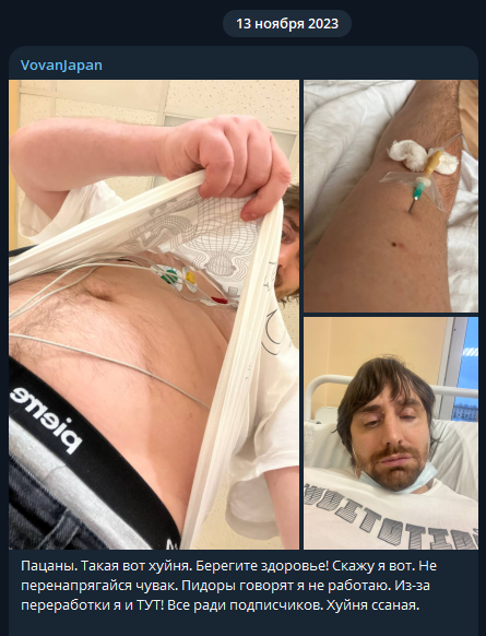 >>25246021 Боба же в очередной раз там помирает, якобы на таблетках, какает и спит по режиму. Правда это не помешало ему в 4 утра наквакивать в телегу.