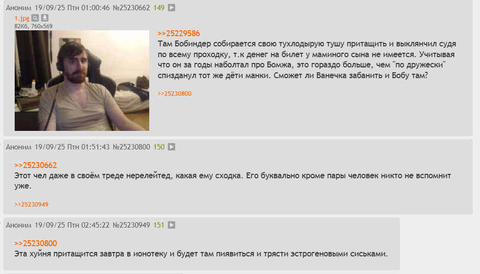 Анончики, нет желания отменить бобу на дваче? Перекатыаать тред на другую личность, а бобу оставить в подшконарном описании. Это анонимная борда, а этот боблин в край охуел зазывая с fag себе зрилов, чем не повод для отмены? Да и сам по себе Бобиндер ничего не делает, раньше хотя-бы на веществах сидел и генерил материал для пупов, но сейчас он труп, как внутри, так и в интернете.