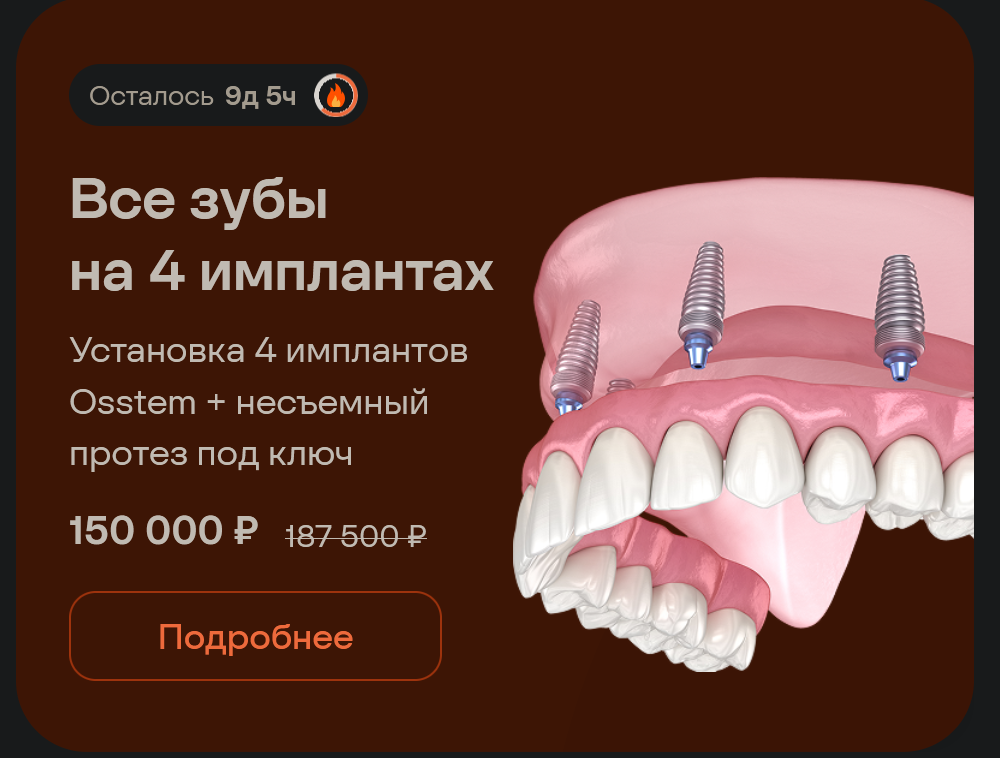 >>25247592 Пиздеж какой-то. Обычно только один имплант стоит примерно 100к. А тут их аж четыре. Плюс надо делать 3д модель челюсти и правильно подогнать форму протеза, чтобы был нормальный прикус.