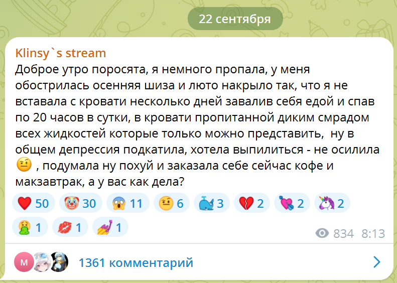 Жду сегодня или завтра прохождение новеллы про симпа стримерши от Ильи Меда. У Прадена получилось отыграть 100%ного ориджинал симпа, посмотрим на Илюху.