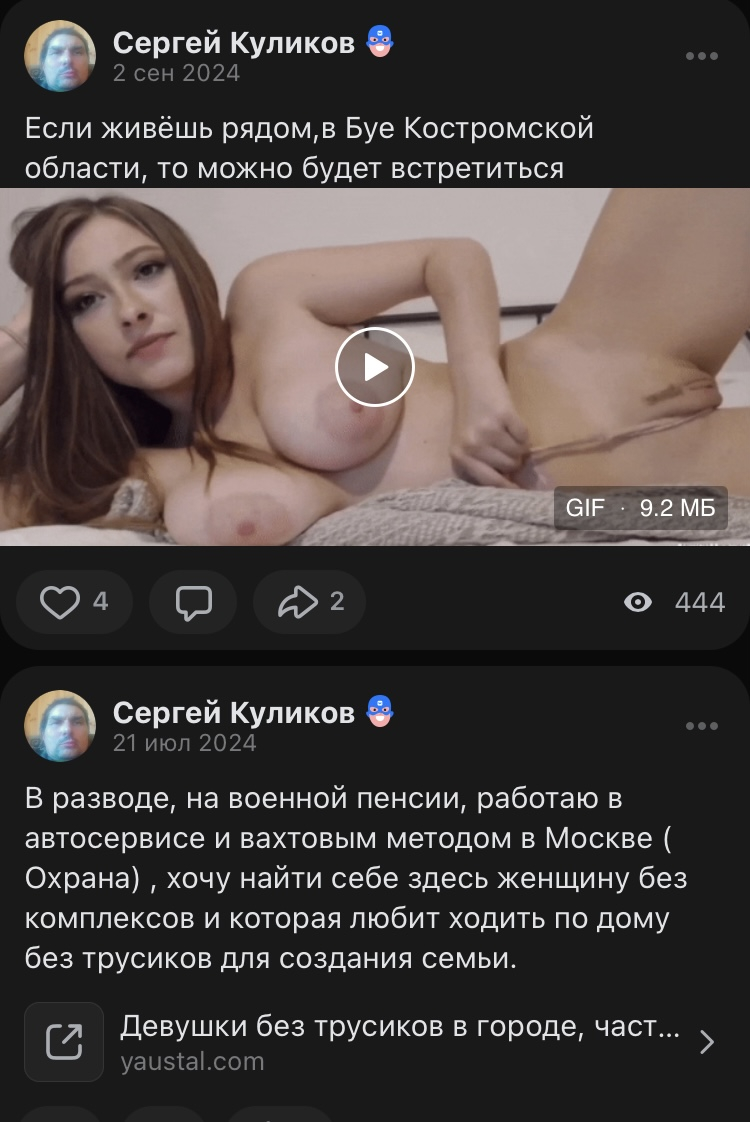 Взял и направил своих додиков в ее тикток. У ней там и так тряска после бывшего ебыря-арбузера, а тут еще ты считай бустишь ощущение сталкерства от российского психопата Толеньки.