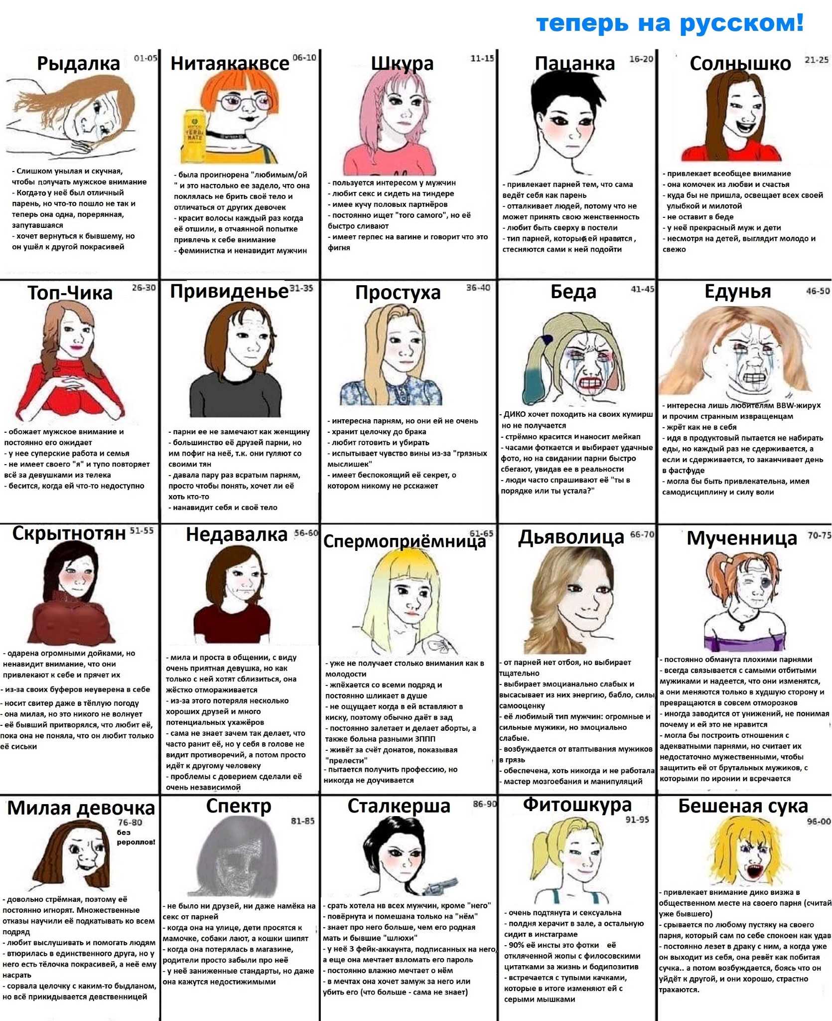 >>25258705 О, бля, имел дело сразу с тремя: приведение, простуха и недавалка, ну по сути это всё один типаж. Ни одна не дала, понятное дело, хотя с приведением сосались, лапал, было классно. Знаю ещё скрытно-тян, действительно всегда ходит в свитере, а чуть холодает в куртке, но даже в куртке видно, что там огромные сиськи, но деваха максимально скромная и замкнутая.