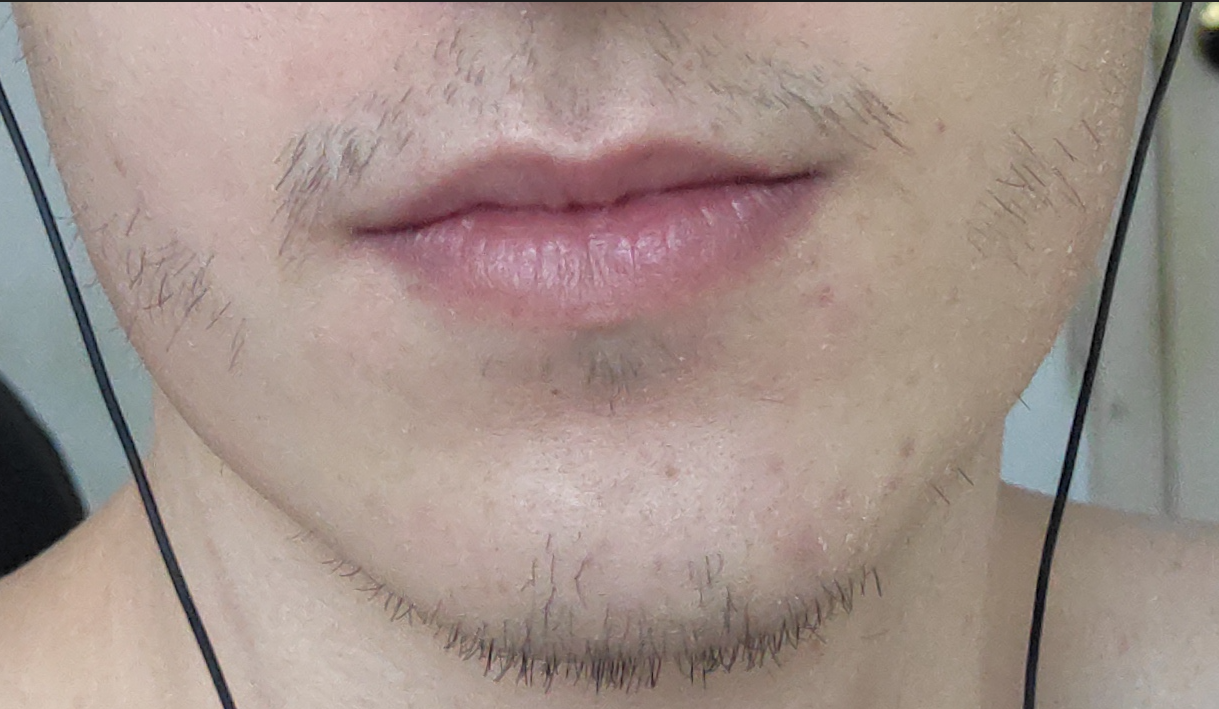 У меня не было никаких усиков, что-то расти начало лет в 14, и бриться можно было раз в месяц. При этом волосы на усах были гуще, чем щас. А щас у меня пикрил за неделю небритья. Лучше бы вообще ничего не росло, чем так.