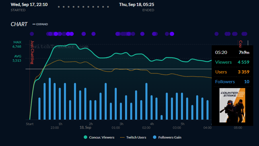 >>25257661 Заебали спорить, чекни этот скрин и объясни куда съебалось 3к, у него сервер, стрим не мог упасть. Остальные скрины бесполезно смотреть, он крутит вначале стрима, чтобы запускать не с нуля онлайна и боты фулл стрим сидят, вот и в 5 утра сидит с 5к.
