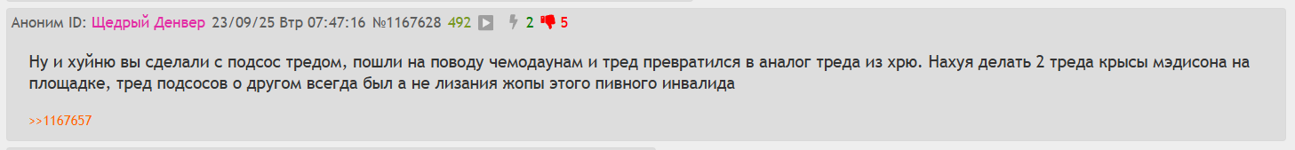 >>25259413 Чтобы я больше этих постов не видел, иначе будут жалобы в /d. Денис Прасад более не является подсосом, он предал дружбу с Ильей, полез под каблук конкурента. Я надеюсь вы поняли эту информацию, никаких больше анонсов.
