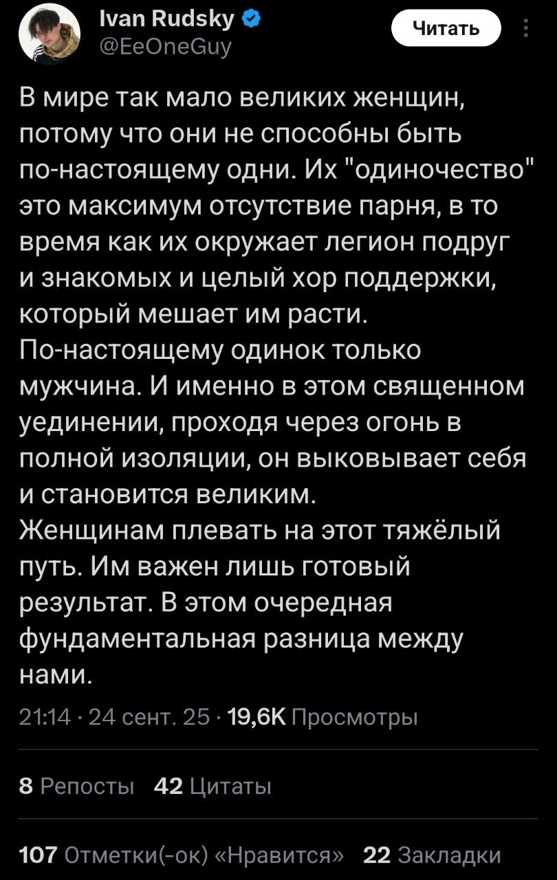 >>25271651 Абсолютная база. Я правда сомневаюсь что к этому нужно было приходить через тонны выкуренного грина и литры выпитой аяуаски, но кому-то для ментального сдвига нужен допинг вот такой, чё поделать.