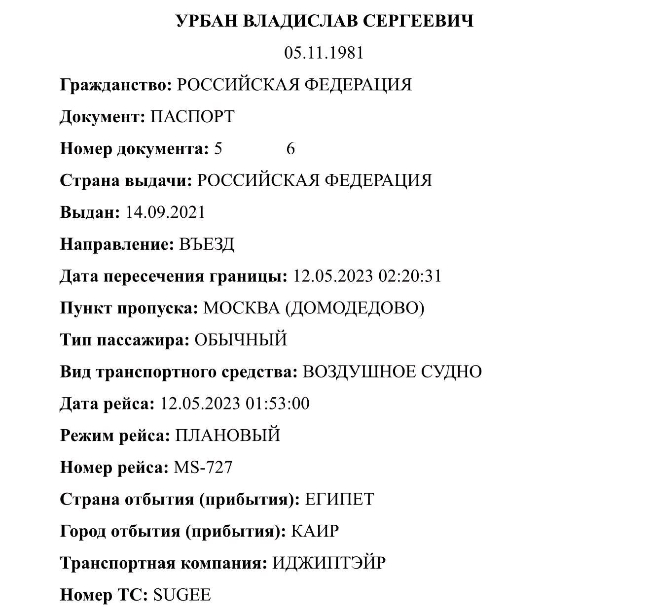 Я работаю в Шереметьево. В 2023 году прямых рейсов из Греции не было, но очень много самолетов начало лететь из Египта. Я был на работе только во время одного такого, но коллеги рассказывали, что видели несколько очень тучных бледных людей в темной одежде, которые в конце весны/начале лета летели из Хургады и Шарма с кучей сумок. Урбан был среди них.