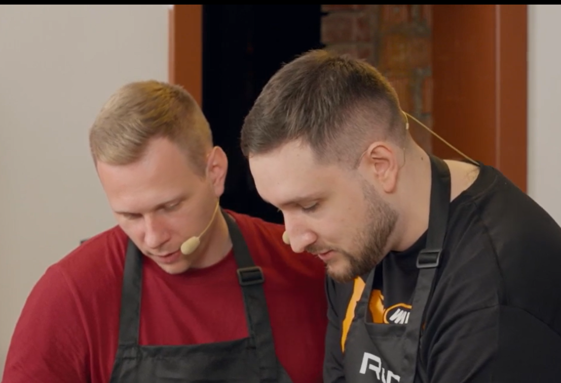Мне вот эти два чела очень понравились. Как выяснили в треде - в красной футболке это представитель Ред Солюшена, а в черной лунопопик Дианы. Весь кукинг эпизод красный не отлипал от черного и ловил каждый его взгляд, застенчиво улыбался и тихонько касался рукой