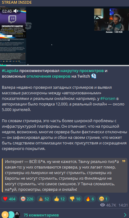 Про что писать? Буквально нихуя не происходит и буквально никто не стримит