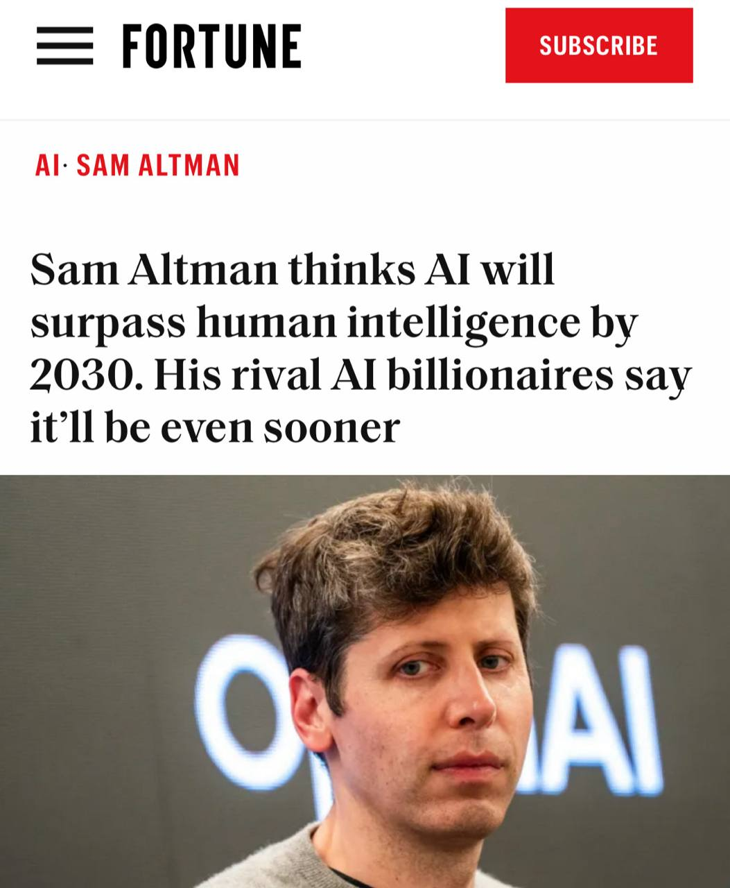 Причём конкуренты Альтмана настроены ещё радикальнее. Например, глава Anthropic ждёт суперразум к 2027, а Маск и вовсе говорит про следующий год. А теперь вспомните все недавние новости про строительство гигантских дата-центров OpenAI и Oracle в США… Пока всё выглядит как подготовка к скорому большому скачку.