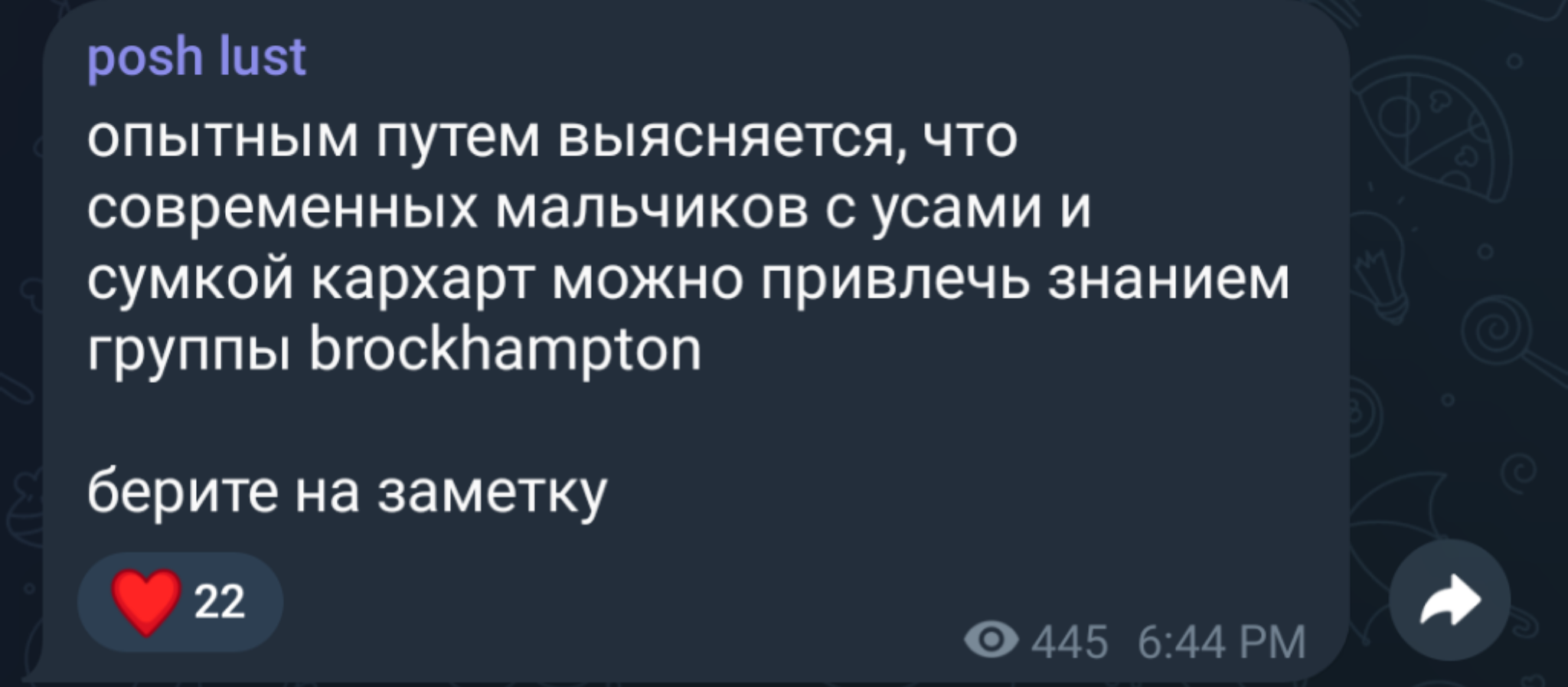 >>25255816 >Не бросал её Тони Резник. >Все ее психи в тг и инстаграме - лишь игра на публику у меня была такая мысль, потому что она уже в тиктоке записывала ролики с намеками типа ее парень бросил и тд хотя она с резником встречалась, правда там можно было оправдать, что это сказка, это сон, просто тикток "на тему", сценарная выдумка, но когда она в тг пишет такие посты, это как то странно для меня. Даже раздражать начинает, потому что не понятно, то ли она и правда внимание привлекает/троллит, то ли про себя говорит или просто свои мысли озвучивает
