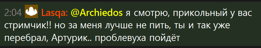 По Арчи когда он не смог переехать в Москву и душил тараканов в новой хате и завозил новый инет, он был пиздец человечный. Такой спокойный, с самоиронией, вообще не агрился на чат т.к. больше думал о долгах и он был пиздец приятный. То же самое как с Теппой, когда она была под таблетками она просто ебанная сучара, а сейчас приятная девушка. Неужели для Арчи надо чтобы на нем висел какой-нибудь пиздец, чтобы он не агрился на чат? Тогда он реально мне нравился, я его никогда не смотрел и он был такой спокойный и угарный. А сейчас какой-то ебанутый, чекает каждое сообщение, додумывает бля кто двачер кто не двачер, банит всех, потом разбанивает одних и тех же челов по 50 раз.