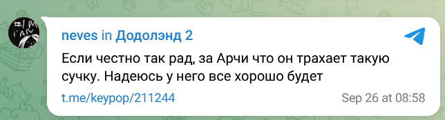 Говнолахта отборной гнили сидит здесь сутками выписывая и доказывая, что Арчи на дне и у него нет друзей. Конечно же ни разу не пахнет завистью к харизме и доходам