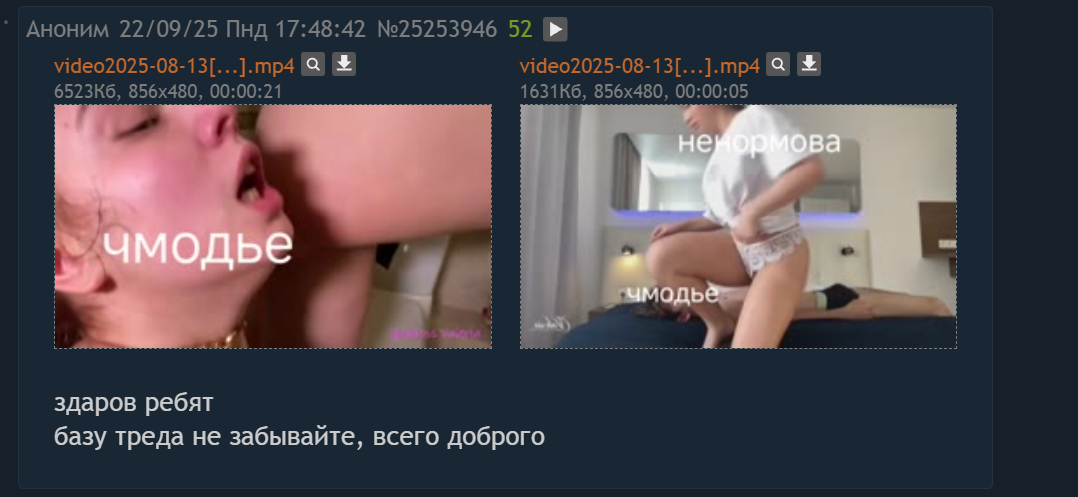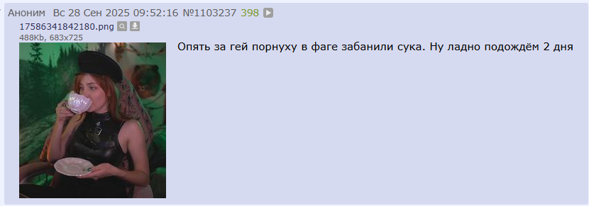 В чем прикол постить ненормову, че у нас пидоры которые ей охваты поднимают после вайпов? Раньше может и работало, когда тред был захвачен этими дегенератами. Но сейчас? Более того самое смешное что у каждого подсоса бабла и качество контента на порядок выше чем ебаного огра, которое разговаривает как колхозник, бухает как скотина, выглядит как продавщица 24/7. Думайте.