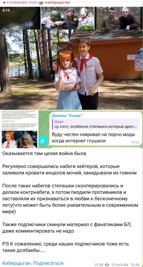 >>25114590 Я старался его игнорировать и не особо общаться с ними Опять же, старался проводить побольше времени с косплеершами, тк это вообще левые люди, которые просто приехали пофоткаться на территории лагеря и не имели ничего общего с Бибой и уж ТЕМ БОЛЕЕ Марковым, а если и знали что-либо про набеги то максимально поверхностно