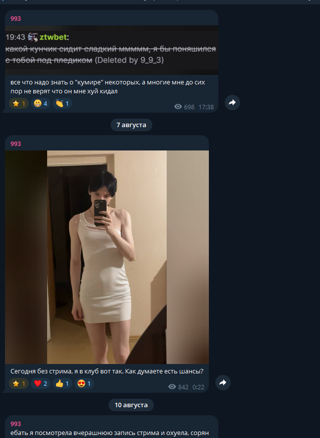 я хуею, очкаридзе только домой добрался сразу за компик чекать как там его кривляния в чатике оценили. остальные отстрелялись и отдыхать. и вы говорите вот он успешный семьянин на расслабоне. да он бы первый семью продал за славу и бабки