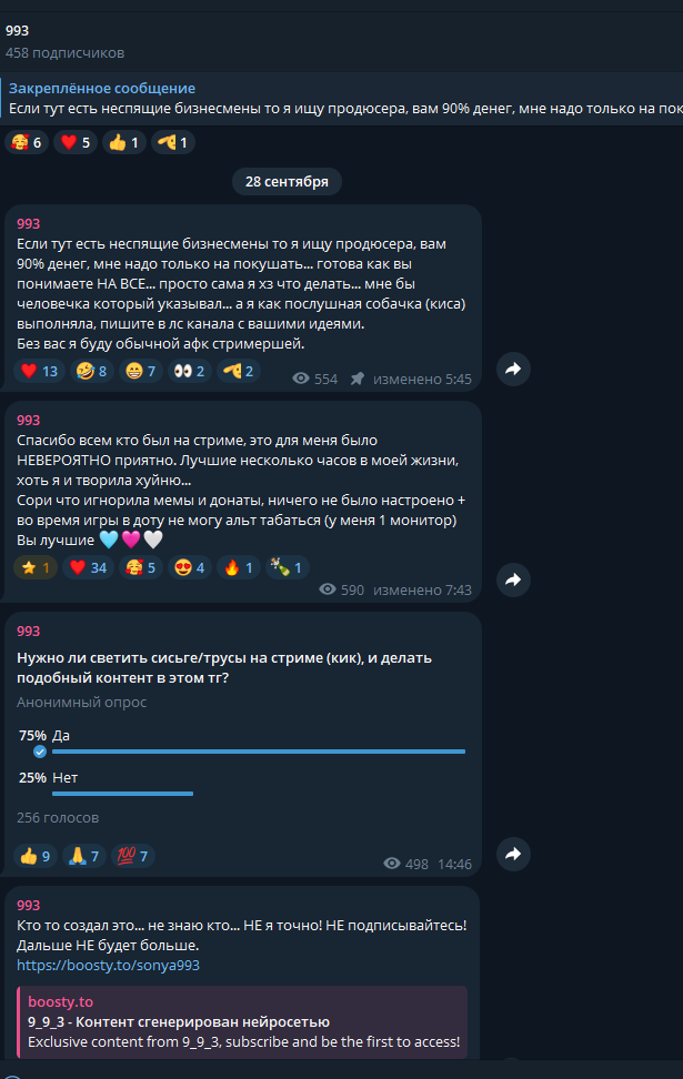 >>25298496 Самый нелепый пиздец это если представить что ты пердикс зумер, школьник/студент. Это ведь якобы на них подобный контент рассчитан? Взрослые люди то вообще твич не смотрят и прочую хуйню.