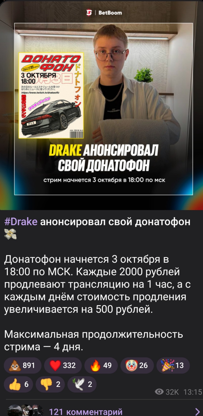 >>25288311 До того как пошел форс цифры 100, он показывал свою стату донатов и довольный сидел и хвастался что слил все в ноль все 13млн. Все ушло на калтент стримов, по это с вероятностью 99% он пиздит на счет цифры и реклама у него очень мало по времени. Он даже с изоляции все слил и отдал сестре