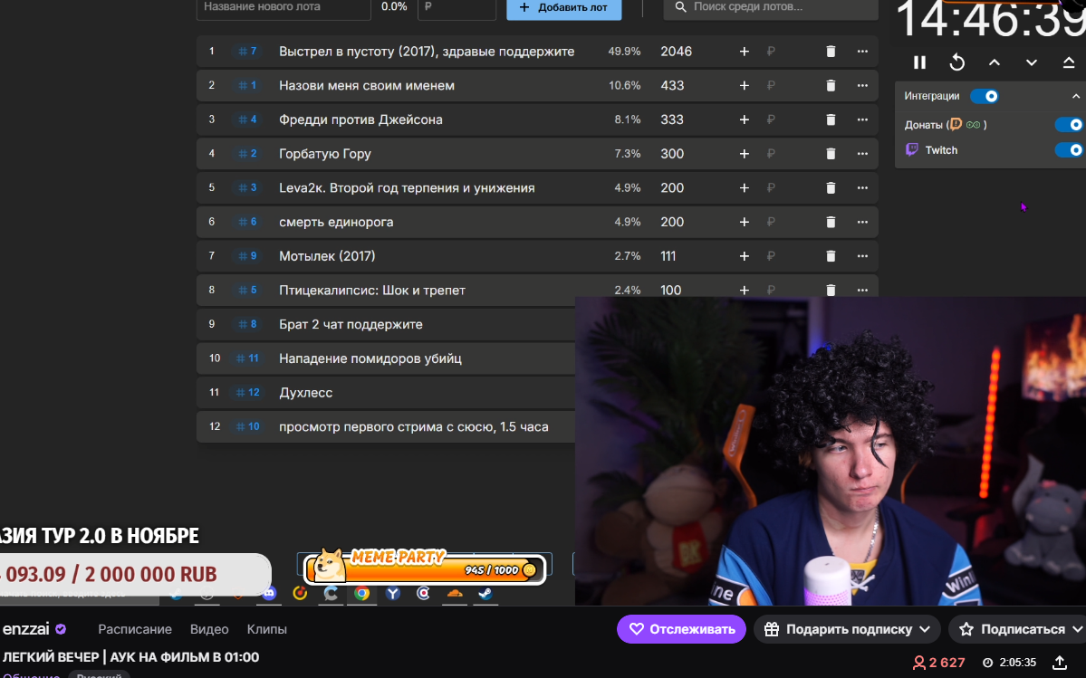 >>25291991 Больше половины самодонаты, что его аж корежит от цен на билеты, еще кто-то отмывает бабки через донаты, странно что несколько часов висело 20к донатов, а потом резко среди ночи когда все спят нахуярили 80к)) без палева так