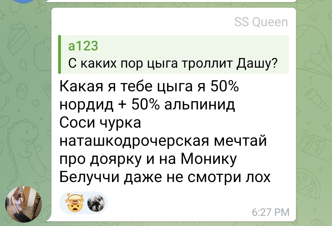 Она меня бесит, присосалась к Шторе и что-то крутит-вертит, лучше на неё доносы пишите. Понтовка дешёвая.