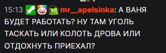 Че то Иван Поляков хуйню какую-то придумал. Ехать к бабе в деревню, когда там два брата, 40-летних лба и мать тусуются. И все в одном доме. Ему надо было в Красноярске, после дня рождения, тащить её "погулять".