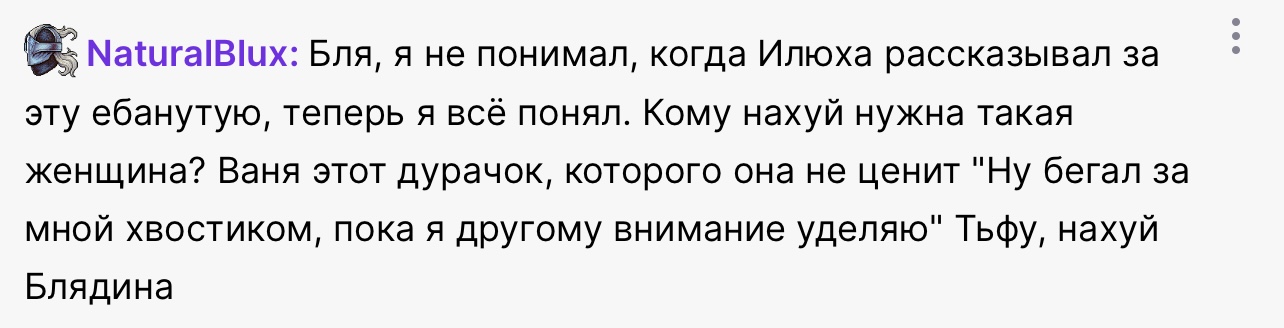 >И ведь все эти казахи, славы после клуба, и прочие парни её продинамившие чувствовали какие-то редфлаги в калоселовой и поэтому её динамили, интересно что конкретно