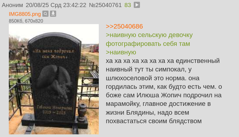Блядина сидит играет в ори как ни в чем не бывало. Я в ахуе от ее похуизма после запятнания своей чести с видео доказательствами на всю жизнь. Тварь даже не пересматривает свой трешовый стрим, в чате которого даже отборные терпильные главсимпы не вытерпели и критиковали хозяйку, ревели от блядского контента, социопатка не собирается ничего менять и оправдываться, ее и так все устраивает. Будет дальше пробивать дно как ни в чем не бывало и повторять то же самое на других стримах. Хотя с возрастом Шлюхаселова становится только хуже, шлюховатее и трешовее.