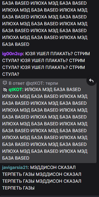 Обращение ко всем срунам пусть каждый сейчас напишет в чат Илюха Мэд База Говно в чате нам и не нужно, пусть 300 зрилов но это будет наша адекватная аудитория