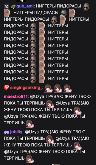Забанила таки марамойка юзевская, минут 10 прошло с сообщения, реально сидит логи проверяет каждого чатерса. Впрочем этого додика я и так особо не смотрел, а уж в праймовую эру тем более.