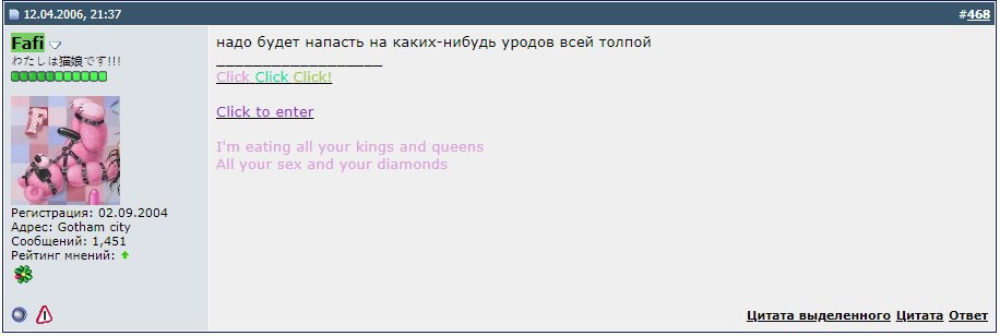 >>25466771>>25466820 Шиз, тут это писать бесполезно, это хейтотред, тут на одного залётного кисика отряд хейтеров и шизов бдящих посменно. Пиши в её соц. сетях, фан-группах и тд...