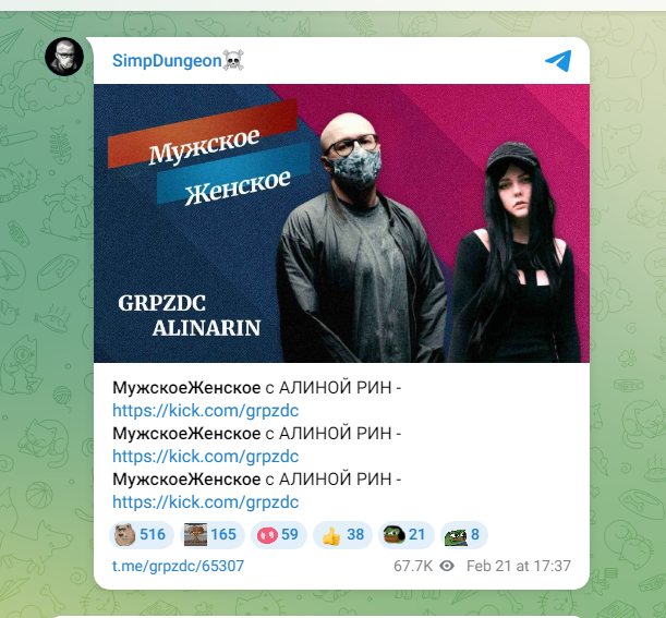 >>25462604 Стрим был ко дню Влюбленных, поэтому именно кекс и около того они там и обсуждали. Стрим был на кике на канале Жоры, но запись вроде как есть только у него на платном бусти. Вообще пиздатый стрим был. Алинка была во первых без своего сценического образа для кисиков, во вторых в противовес ей был самец с которым она считается. Очень любопытно было за ней понаблюдать в такой обстановке.