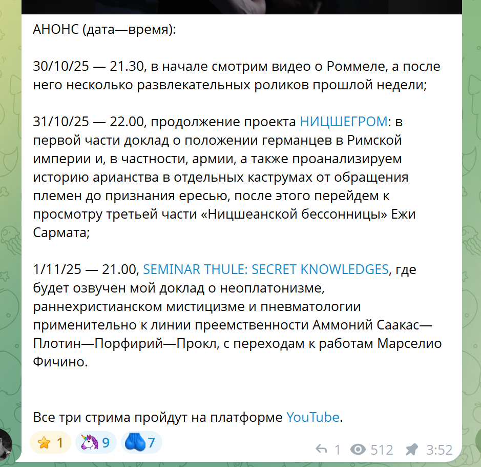 Вынужден прокомментировать ситуацию с приглашениями на дегенеративные сборища Островского и его передвижного цирка – изначально, в чат канала с репостами толпой пришли участники сообщества «На Ютубе 17», в котором имею перманентный бан за публикацию заметок о тайной политической кухне Анатолия и его жены, являющейся, по совместительству, дочерью российских силовиков со всеми проистекающими из этого факта возможностями по предоставлению закрытой информации доверенным лицам в обмен на денежное вознаграждение.