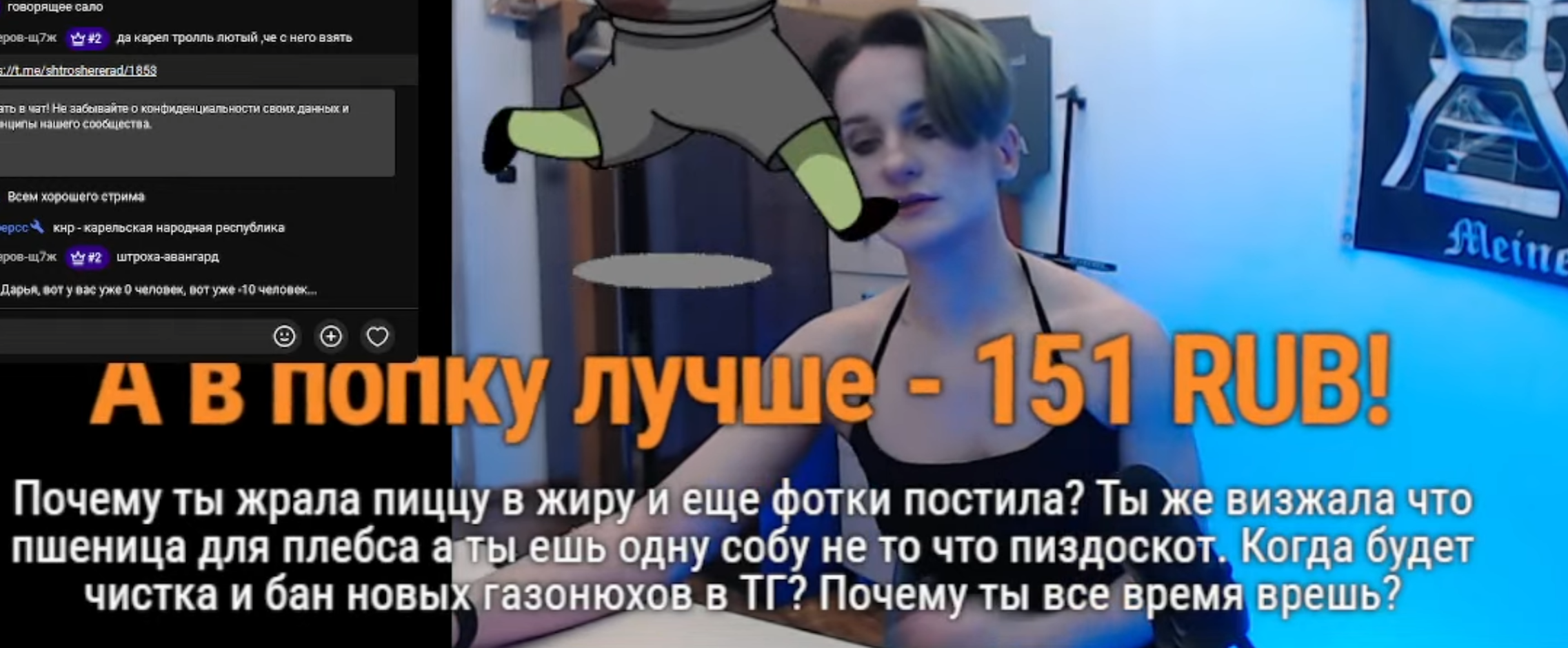 А у хохлов есть треш- стримерши? Можно задонатить такой, чтоб она мочой залила носатого, или пакли выдернула. Известно же в какой зал она ходит. Вот смеху-то будет, когда баба ирл Дашеньку попустит