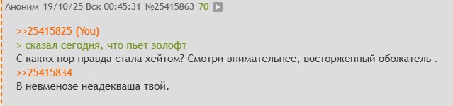>>25415825 > сказал сегодня, что пьёт золофт С каких пор правда стала хейтом? Смотри внимательнее, восторженный обожатель . >>25415834 В невменозе неадекваша твой.