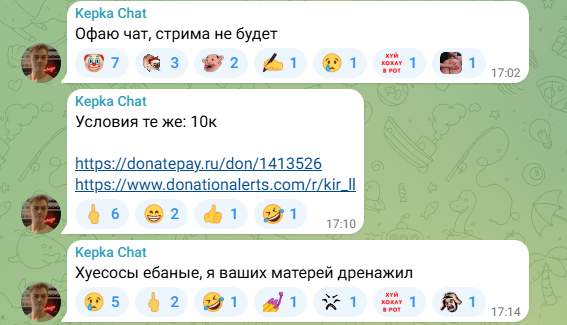 Вот Ослан удивляется, что сегодня мало донатов. А какие ему блять донаты. Никто не хочет смотреть и слушать это безпалое уебище. И с Маной Ослан явно перебарщивает, сводит личные щеты, а зрителям это нахуя? Никакого веселья короче.