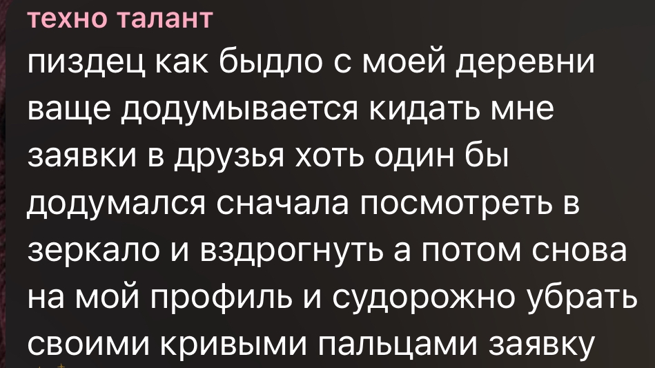 Мне похуй например на эту нарколыгу и твою нейроблядскую панихиду и своих татуированных шалав уноси, любитель вылизывать помойки