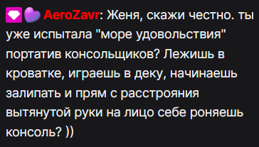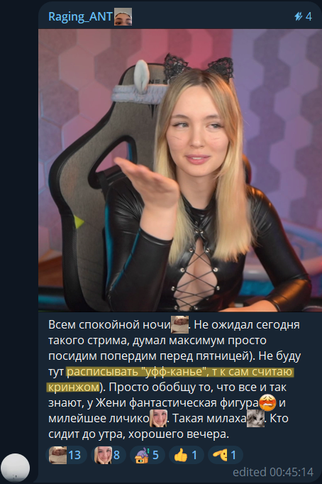 Денис, называющий себя Женей и заставляющий других считать, что он тёлка, тупо признался, что у него яйца. Блять, я даже не знаю как это перекрывать теперь дефателям приваточным.