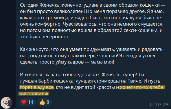 >>25487011 → Очень похоже на успокоение или удержание подписчиков. Явно подзабила на стримы. Вот только с чем связано - из-за бабок с приватки или теневого, который даёт бабло. Возможно, оба варика. Ринчик могла спокойно найти теневого папика для свой подружани.