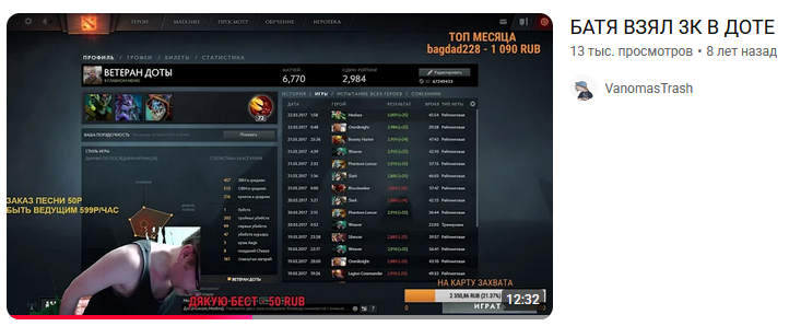 >>25500338 Бля ну ты не прав. В 2010-2011-2012 про него всегда мелькало все, его везде вспоминали, ролики набирали кучу просмотров, итд. Он был таки популярен и налутал он дохуя. Я когда вкатился в тему (2018 чтоль) еше тогда, он вроде потерял популярность уже, НО ДАЖЕ ТОГДА, он за ебаный стрим по 20-50к собирал. То есть, если в 2018такие бабки были, представь что на пике популярности он лутал. Я помню ему захотелось ебаную плазму за 200к, ему надонатили на нее меньше чем за неделю. На самом деле, бабок было куча.