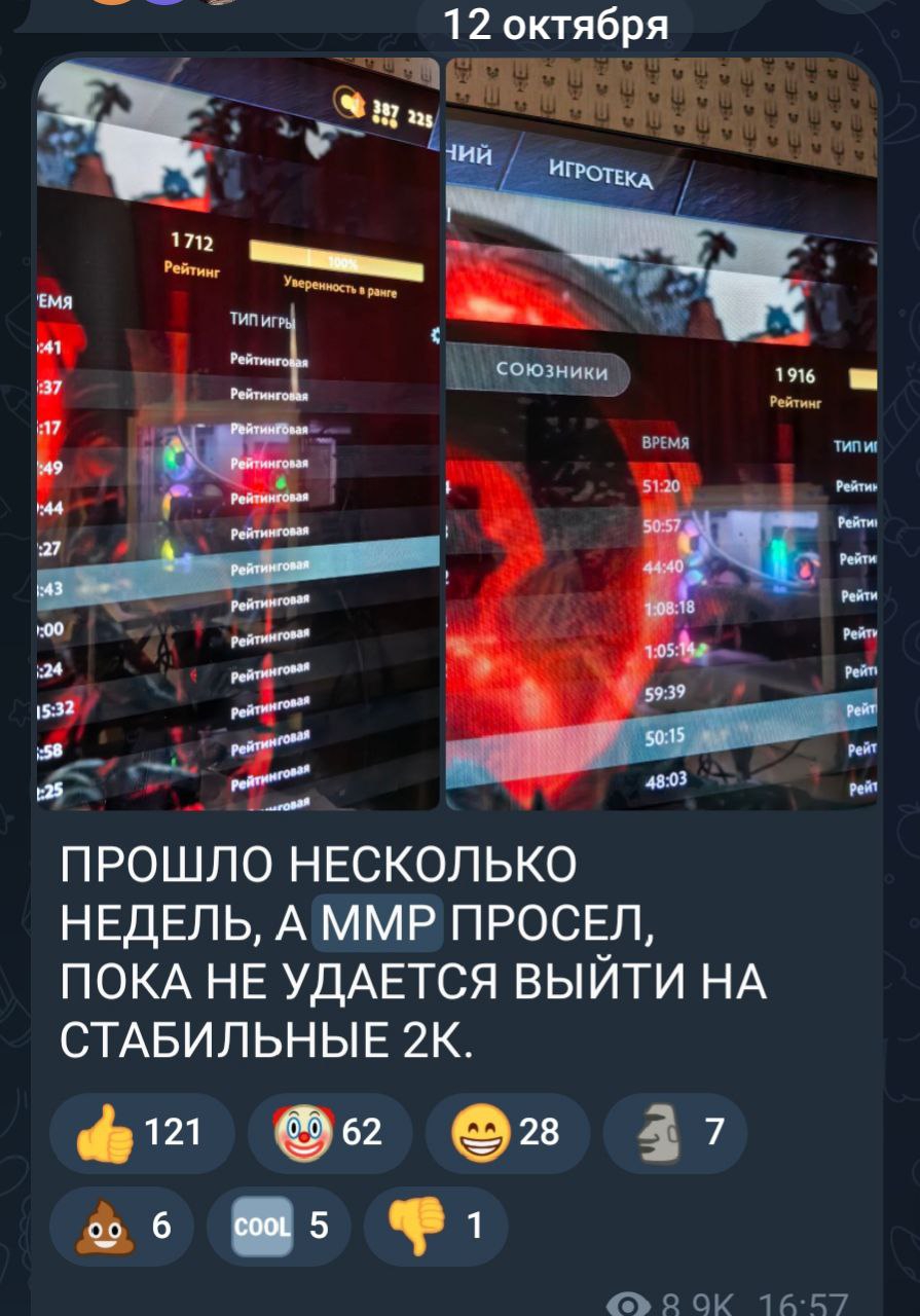 >>25496793 Это относительно давно было вроде, щас около 1000 у него. Неходячка лоускильная, не соображает нихуя, не учится. Не знаю нахуя в 40 лет играть в доту, игра не для закостенелых старых мозгов, да и аудитории это не интересно, онлайн проседает ниже среднего