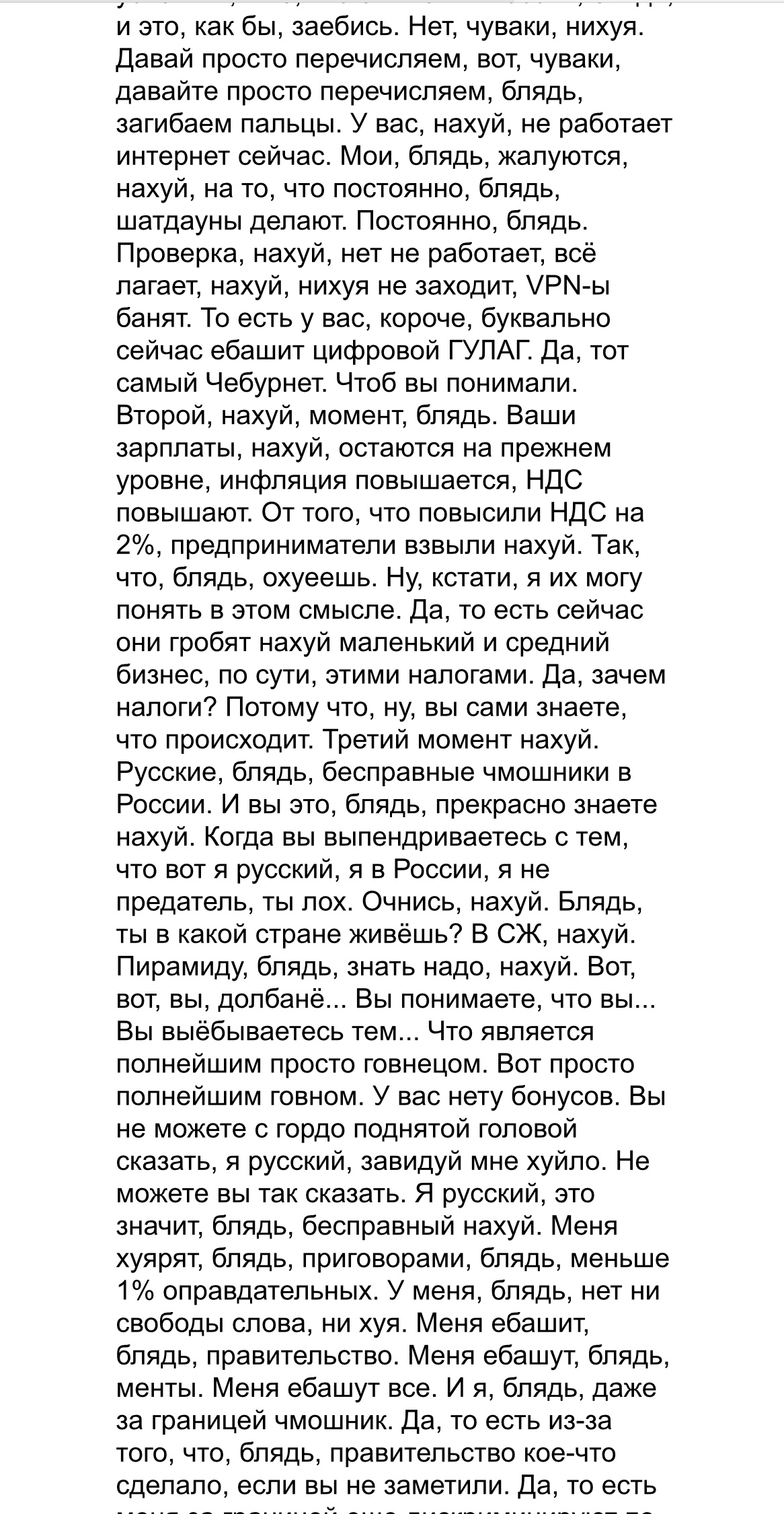 Да неважно, сам факт того, что УЖЕ составлял документ, прикладывал скриншот к этому. Ёпт, если тебе срут в личку, то просто в ЧС кинь и забей болт. Поведение как у бабы какой-то, которая страдает от бывшего / новых парней, но в ЧС его не кидает Идиотизм какой-то. Ну короче как будет ролик по нему, я это припомню. Мне самому интересны причины такого поступка. Осуждаю, но окончательные выводы пока делать не стану
