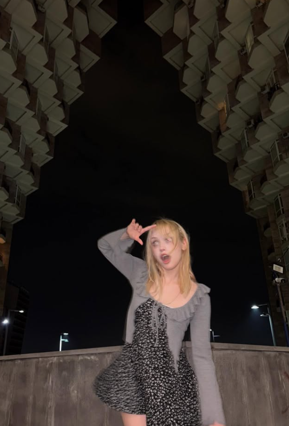 Толстая полторашка с лишним весом, пушапом и немытыми волосами, в каком-то дешевом костюме с алика пытается изобразить что-то вроде танца, нелепо дёргаясь.