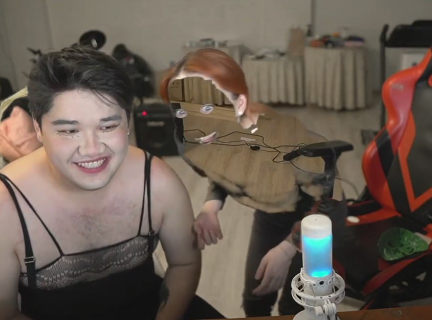 Не выкупаю зачем грим делать, который лицо закрывает. Лучше ведь на лицо тян смотреть, чем на маску. Стример конечно урод страшный, но не настолько, чтоб маску носить. Ceйм?
